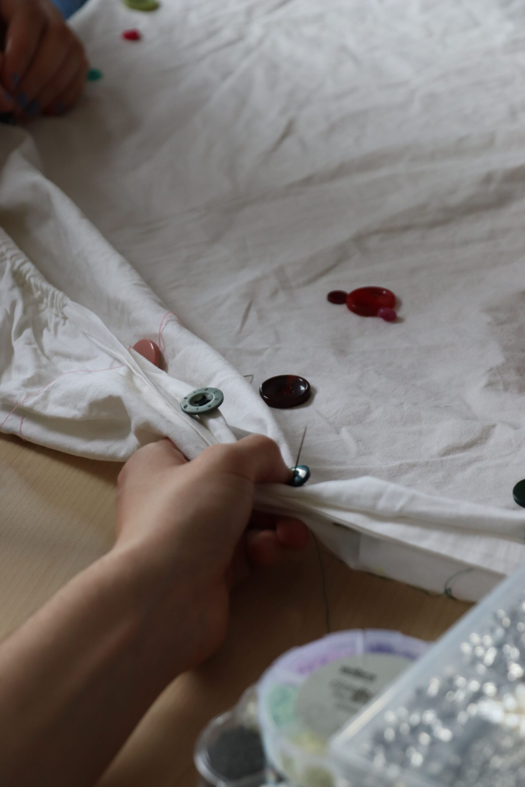 Nous avons préféré axer notre travail sur les solutions existantes. C’est pour cela que nous avons mis en place un atelier pour apprendre les rudiments de la couture. Réussir à coudre un bouton, c’est être capable de réparer jeans et chemises, ainsi que d’éventuels petits accrocs, et même customiser ses vêtements.